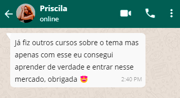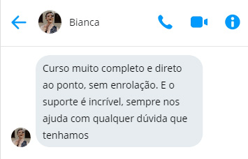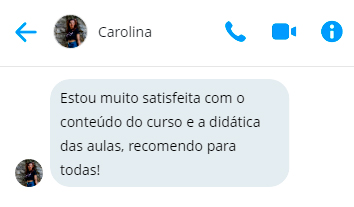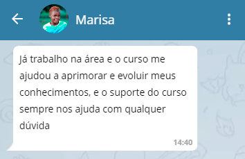 “Fiz 5 cursos e vou fazer mais! A moça que me atende é super gentil, o atendimento é excelente! Estão de parabéns!”